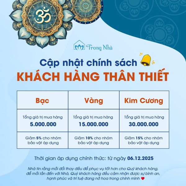 Cảm ơn bạn đã tin tưởng và đồng hành cùng Trong Nhà trên hành trình mang đến những bảo vật hộ thân và pháp khí tâm linh giúp tìm lại bình an từ bên trong.