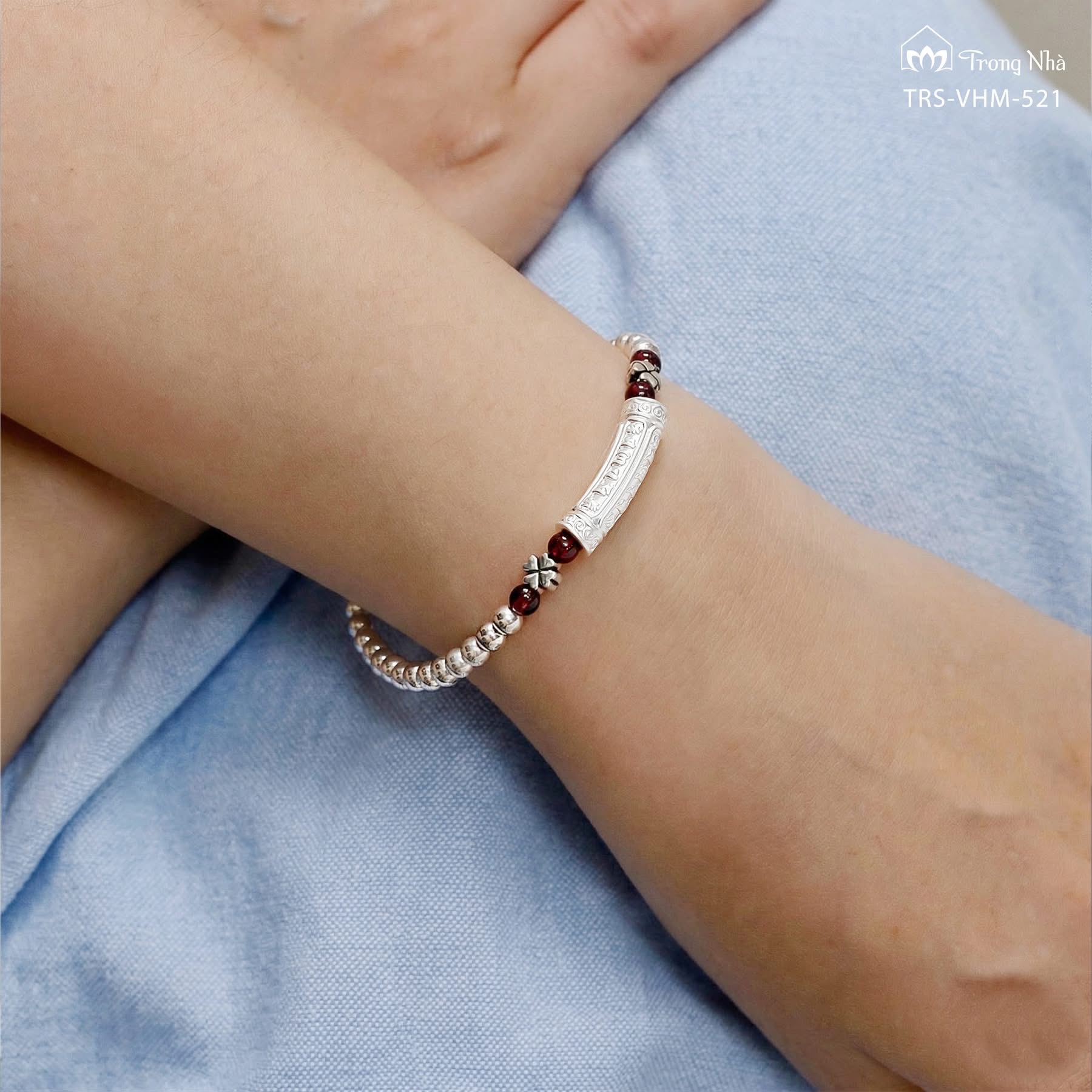 Lắc tay bi bạc mix charm Om mani padme hum ( VHM 521) KHUYẾN MÃI - ƯU ĐÃI