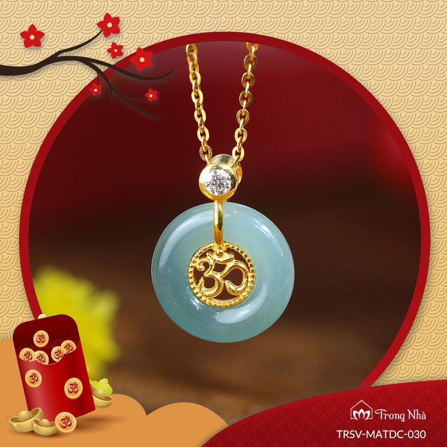 Mặt dây chuyền Bảo Phúc Đại An - Đồng điếu lam ngọc bọc chữ Om vàng ( TRSV MATDC 030 )