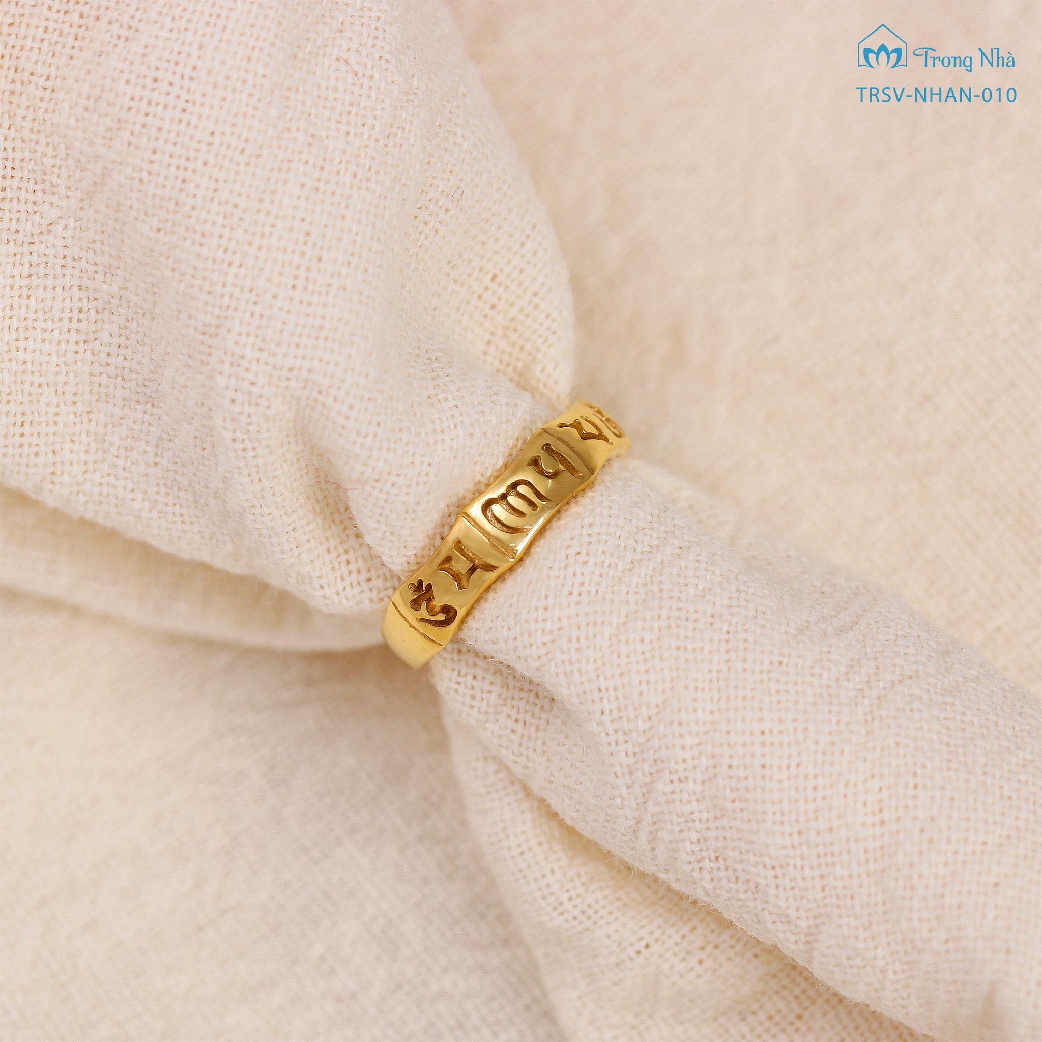 Nhẫn vàng khắc Tâm chú của Quán Thế Âm Bồ Tát - Om Mani Padme Hum (TRSV NHAN 010) KHUYẾN MÃI - ƯU ĐÃI
