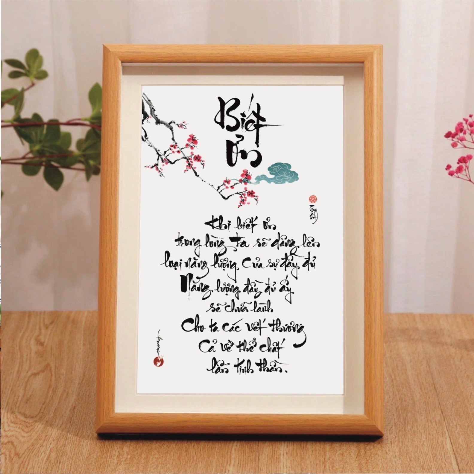 Nhà xin giới thiệu với các bạn BST Tranh thư pháp Liên Hoa Thủ, những bức tranh được thiết kế và sáng tạo bởi Nghệ Sỹ Thư Pháp Liên Hoa Thủ, theo phong cách tối giản, trang nhã, phù hợp để làm quà tặng, để bàn làm việc, bàn trà, để nhắc nhớ mình trong việc tu tập, bảo hộ thân tâm mình, bằng những thông điệp trí tuệ của nhà Phật.