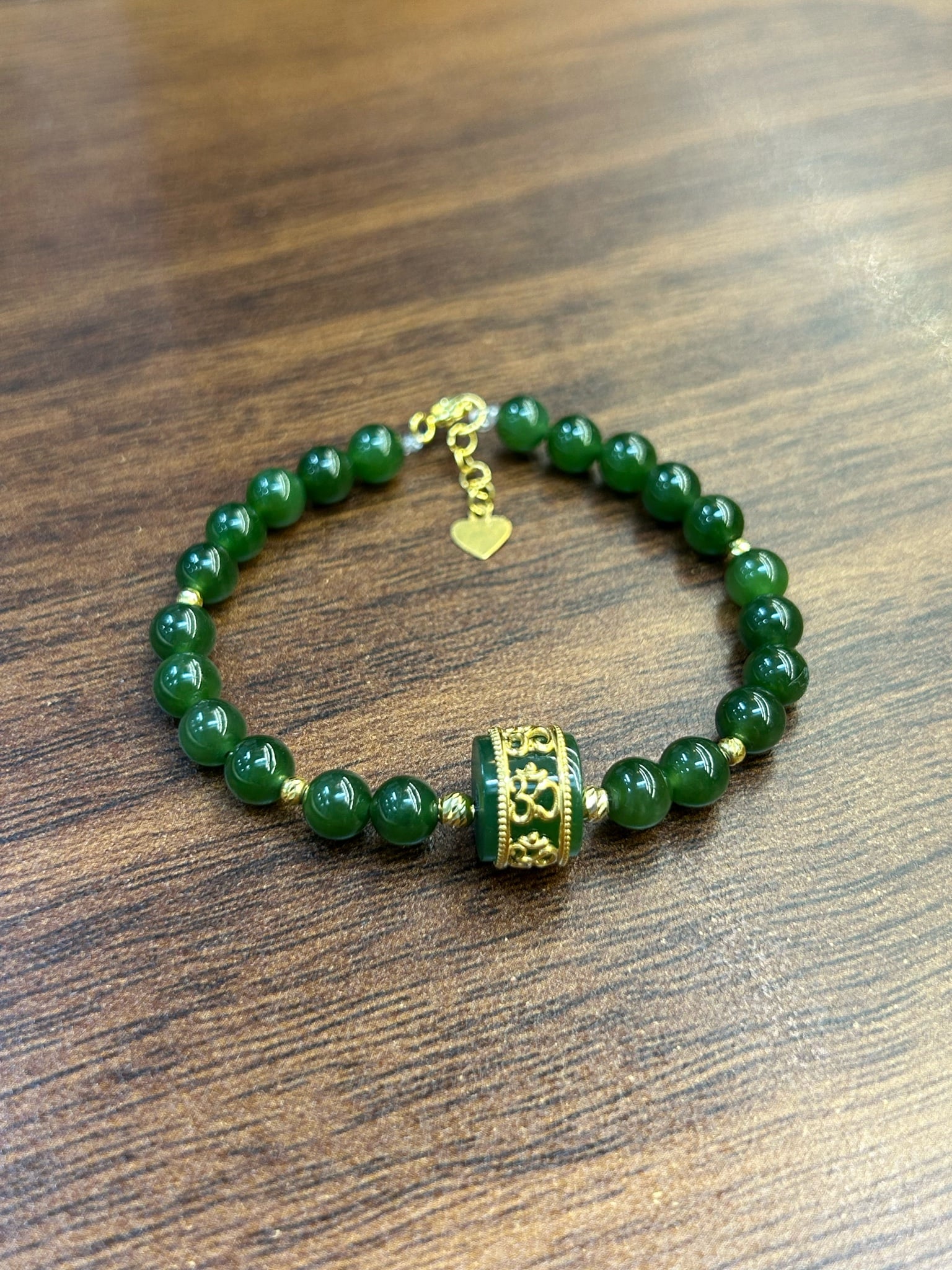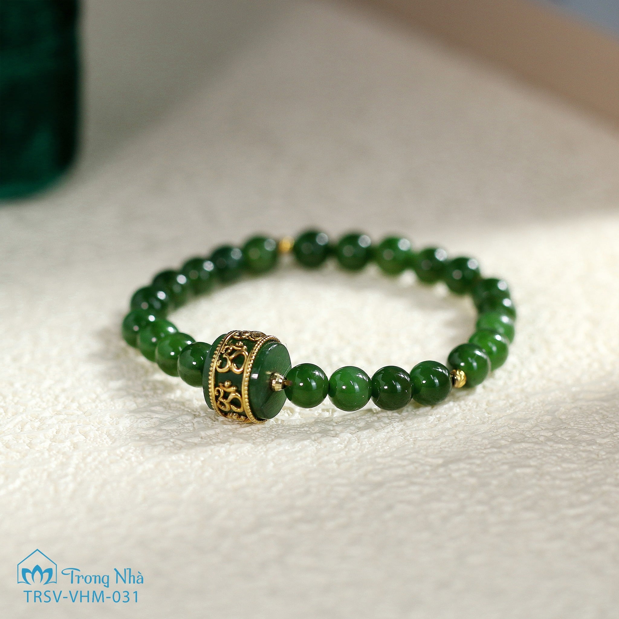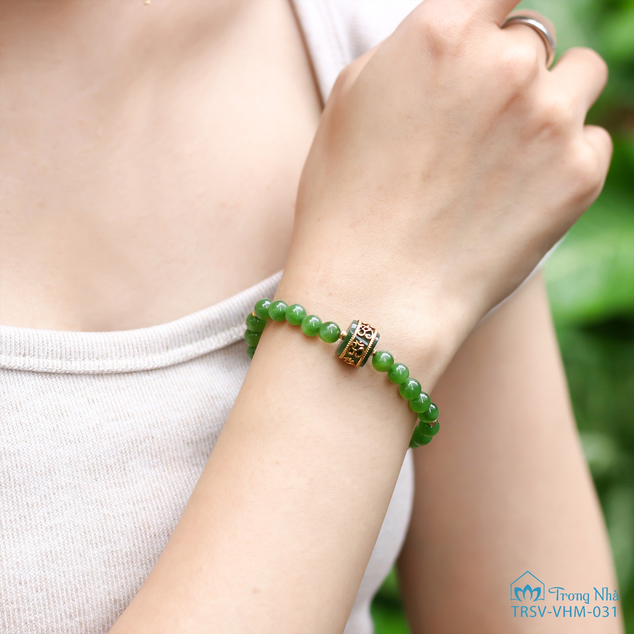 Vòng Ngọc bích mix Lu bọc vàng khắc chủng tự Om ( TRSV VHM 031 )