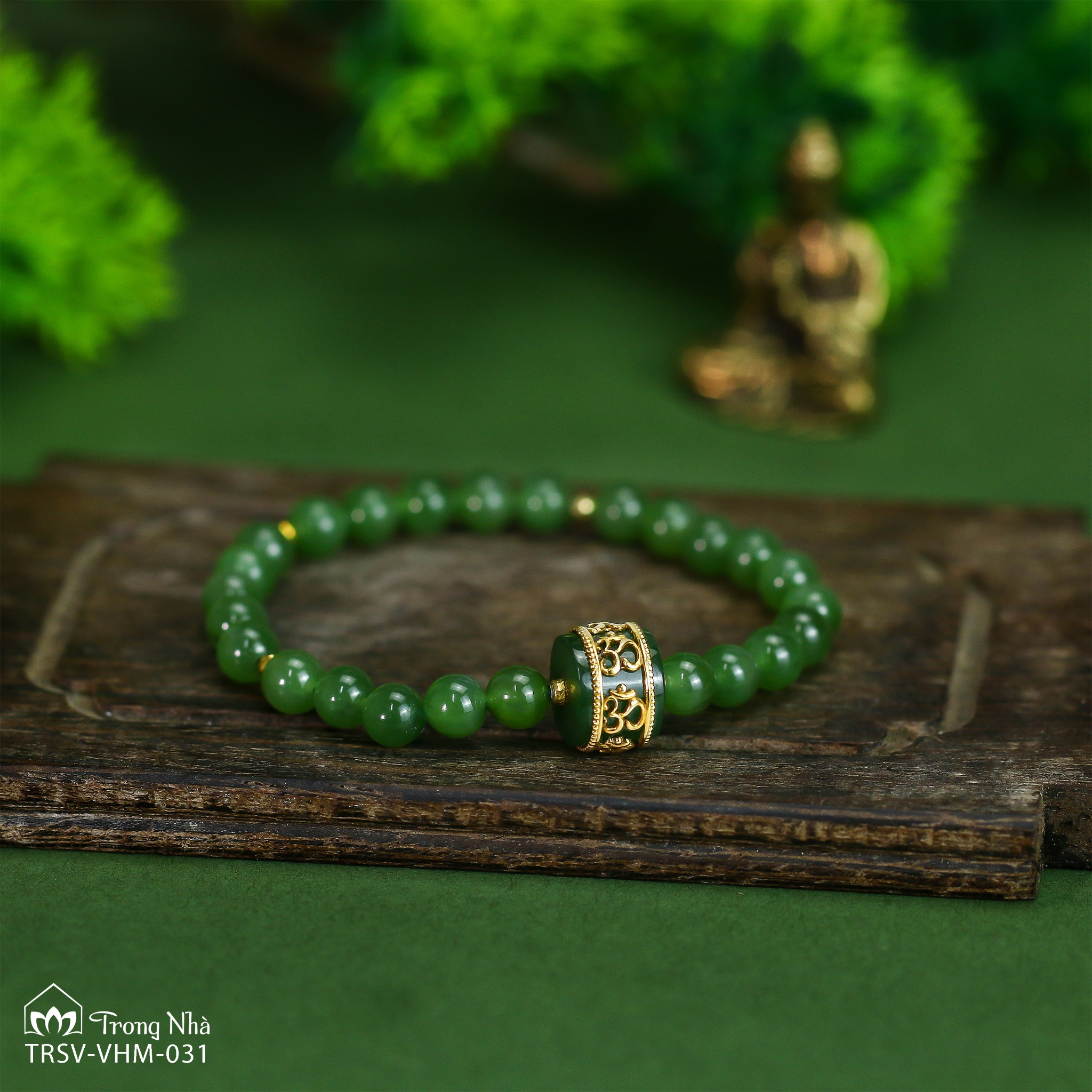 Vòng Ngọc bích mix Lu bọc vàng khắc chủng tự Om ( TRSV VHM 031 ) KHUYẾN MÃI - ƯU ĐÃI