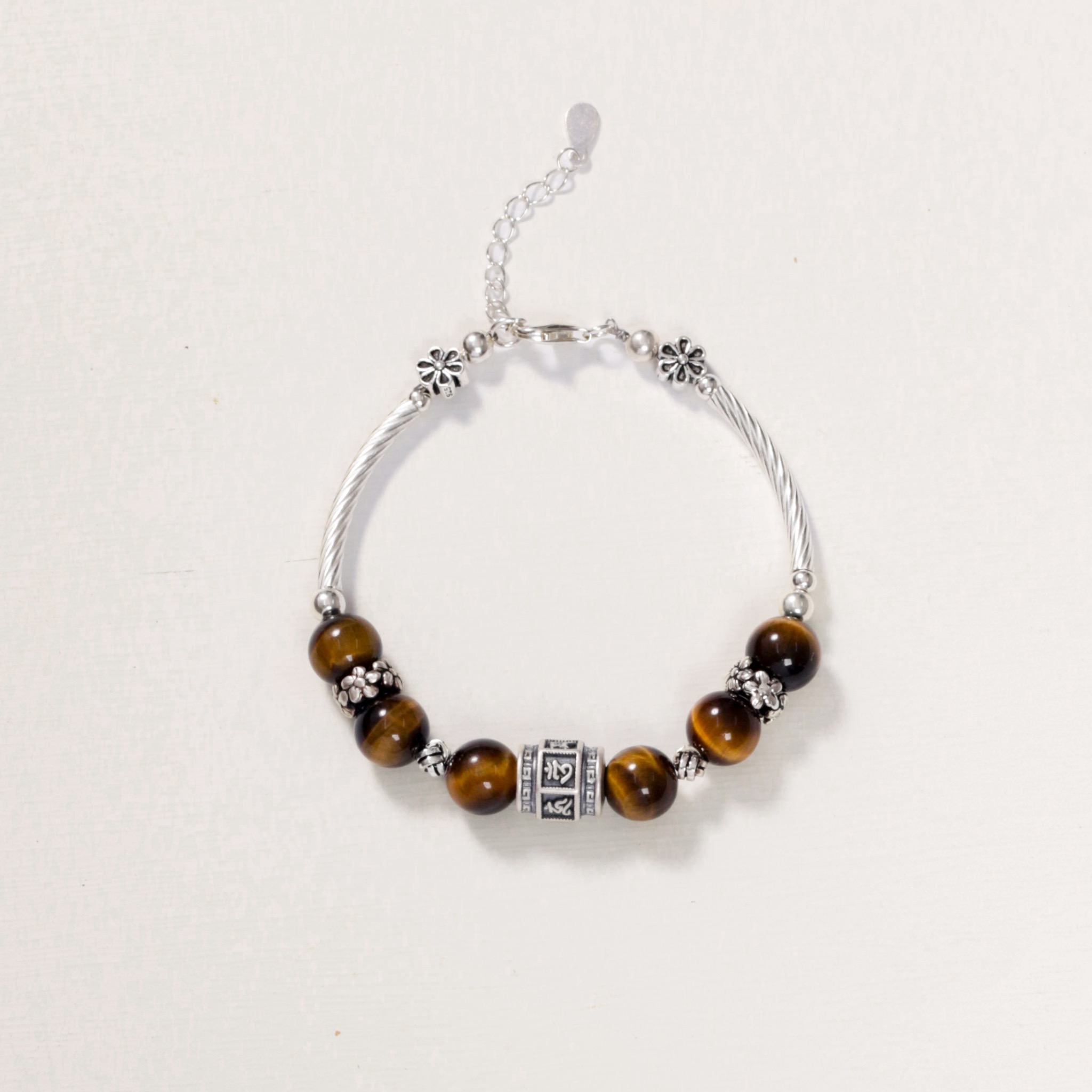 Vòng Định Tâm - Mắt hổ nâu vàng mix charm om mani padme hum ( TRS VHM 006 )