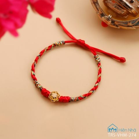 Vòng tết chỉ đỏ ngũ sắc Sen vàng 10K (TRS VHM 274)